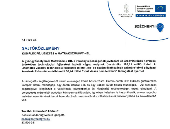 3231 Gyöngyössolymos Mátrai út 2. | 37/500-381 | matrakozmu@matrakozmu.hu